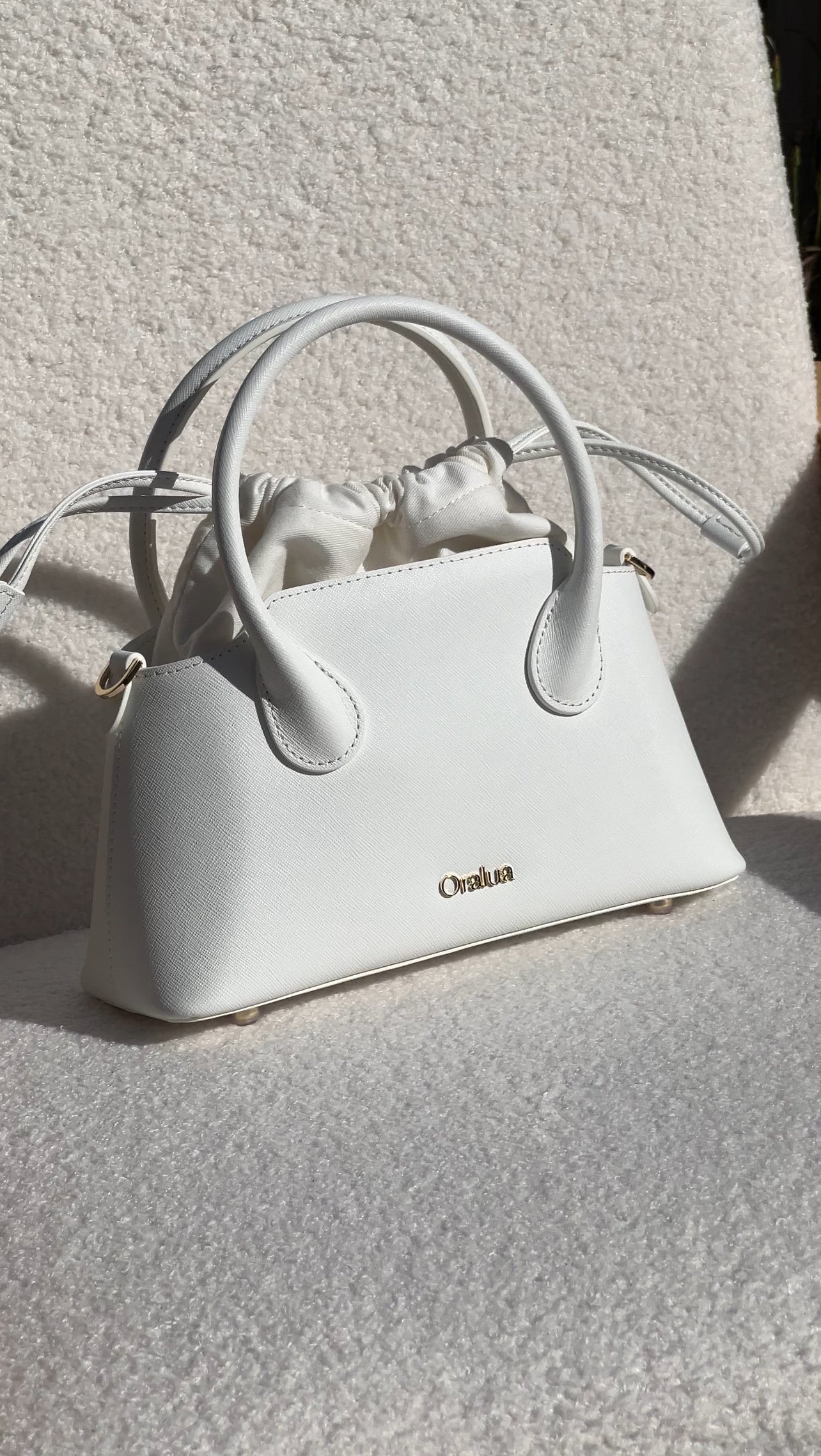 Part of the Oralua Capsule Collection, the Augusta Bag is a modern reinterpretation of the classic drawstring silhouette. Crafted from premium White Saffiano leather with a tactile, structured finish, this bag combines elegance, versatility, and meticulous organisation. Its sachet-style closure and structured straps create a functional yet sculptural statement, perfectly reflecting Oralua’s forward-looking design ethos.